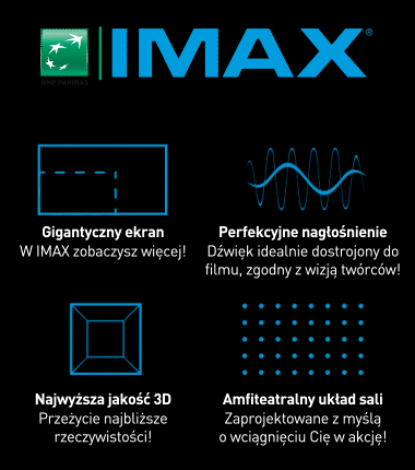 The unconventional screen size "opens the eyes" to the sensations not seen in other movie theatres, making the viewing of Hollywood's biggest movies even more complete. The revolutionary use of two lenses in the IMAX digital cinema projectors makes the 3D image brighter, sharper and more comfortable for the eye. Sunglasses are bigger, more comfortable and more durable. The unique impression during the show also provides: an amphitheatre hall arrangement, top quality chairs and majestic sound quality. The exclusive operator of "unforgettable IMAX experiences" in Poland is Cinema City.