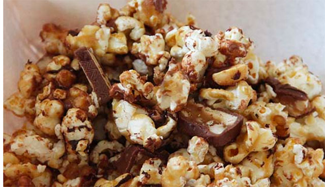 Chocolate meets popcorn as you combine the classic snack bar with the perennial cinema treat.