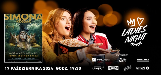Październikowa edycja wydarzenia ponownie przywita Panie bezalkoholowym drinkiem, a o to by z kina nikt nie wyszedł z pustymi rękami, zadbają partnerzy eventu. W torbach dla uczestniczek w październiku znajdą się m.in. kosmetyk od marki ZIAJA, niespodzianka od IKEA, czy napój Schweppes. 17 października o 19:30 Cinema City wyświetli przedpremierowo film „Simona Kossak”, który brał udział w Konkursie Głównym w Festiwalu Polskich Filmów Fabularnych w Gdyni. Sprawdź swoje najbliższe kino i kup bilet na to wyjątkowe kobiece wydarzenie już dziś: https://www.cinema-city.pl/filmy/ladies-night-simona-kossak