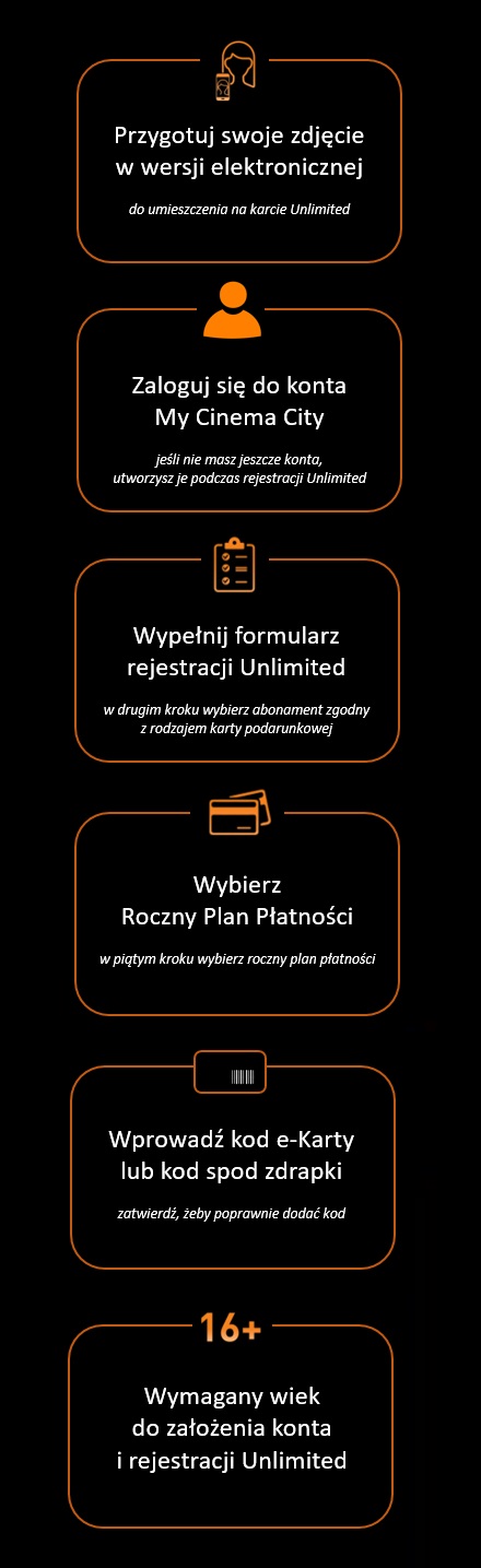 The Unlimited Gift Card can be used to register for the Unlimited program. It is a non-cash type of payment for the Unlimited Annual Membership. During registration, select the Unlimited Membership Group corresponding to the type of gift card you have. Enjoy over 200 movies a year, discount in Cinema City bars and cafes, preview screenings for club members and more! Exchange your gift card for the Unlimited Membership Card and go watch a movie today!