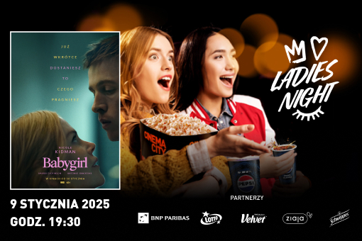Cinema City zaprasza wszystkie Panie na pierwsze w tym roku Ladies Night już 9 stycznia o 19:30, podczas którego wyświetli przedpremierowo erotyczny thriller z Nicole Kidman w roli głównej „Babygirl”. Na uczestniczki eventu, oprócz wzruszającego seansu, czekać będzie powitalny drink bezalkoholowy, prezenty od partnerów wydarzenia, a także konkursy z nagrodami.