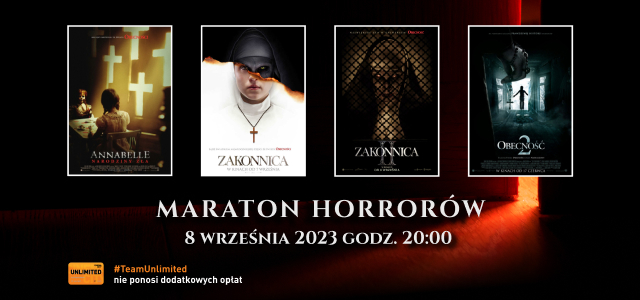 O tym, że uwielbiacie się bać przekonaliście nas już nie raz wykupując wszystkie bilety na wcześniejsze nocne seanse grozy. Nie możemy więc Was rozczarować, dlatego zapraszamy na kolejny maraton horrorów z filmami z upiorną zakonnicą z uniwersum Obecności. W ramach wydarzenia wyświetlimy 4 tytuły: „Annabelle: Narodziny zła”, „Zakonnica”, „Zakonnica II” (premierowo) oraz „Obecność 2”. Gwarantujemy szybsze bicie serca i gęsią skórkę, która pozostanie z Wami jeszcze na długo po końcowych napisach.