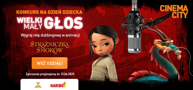 By wziąć udział w konkursie, wejdź na stronę https://www.wielkimalyglos.pl i nagraj głos swojego dziecka do jednego z wybranych fragmentów filmów. Pamiętajcie, że chodzi o dobrą zabawę i kreowanie niesamowitych postaci. Konkurs trwa do 15 czerwca 2023 roku. Nagrania zostaną ocenione przez profesjonalne Jury, a zwycięzców ogłosimy już 21 czerwca. Główna nagroda to rola dubbingowa dla dziewczynki lub chłopca w filmie “Strażniczka Smoków”, którego premiera zaplanowana jest jeszcze w tym roku. To wspaniała opowieść o nieprawdopodobnej przyjaźni niewolnicy Ping i smoka w świecie, gdzie magiczne stworzenia zostały uwięzione z powodu chciwości ludzi.